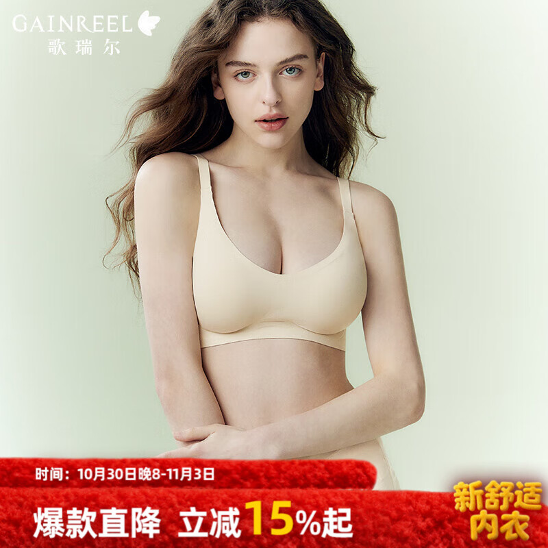 Gainreel歌瑞尔舒适无钢圈裸感软支撑东方简奢风内衣女无痕小胸内衣平胸专用文胸 爱尔兰奶油 75B