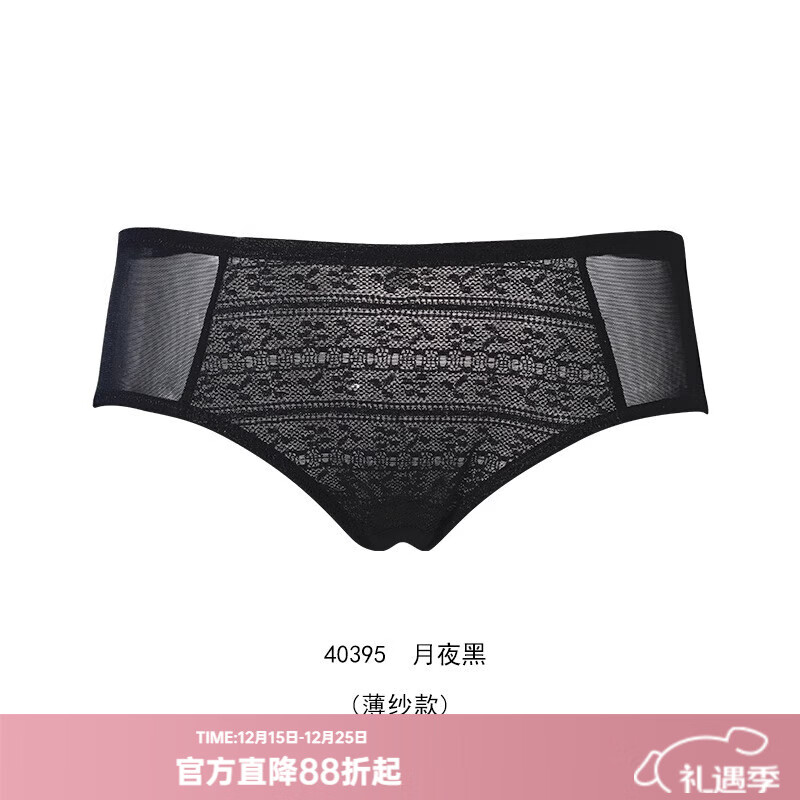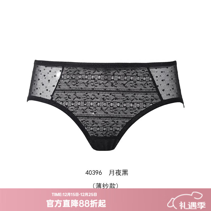Gainreel歌瑞尔法式蕾丝内裤薄款女士内裤性感纯欲蕾丝内裤女纯棉底裆舒适 月夜黑 40396- 1条 M