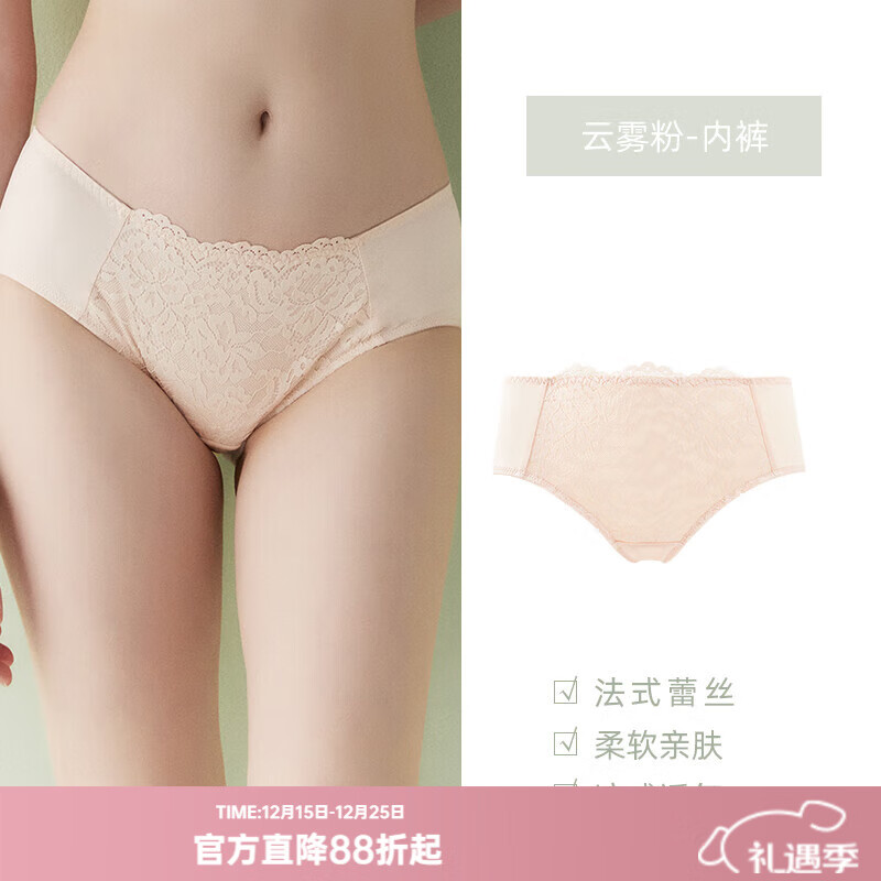 Gainreel歌瑞尔女士内裤性感蕾丝中腰棉裆底裤短裤 云雾粉 40032 1条 M