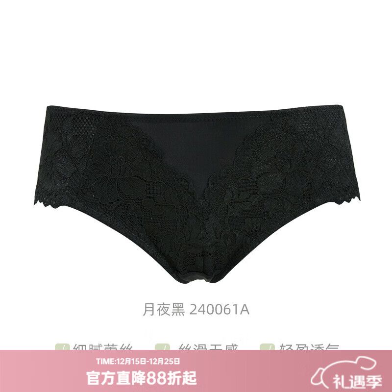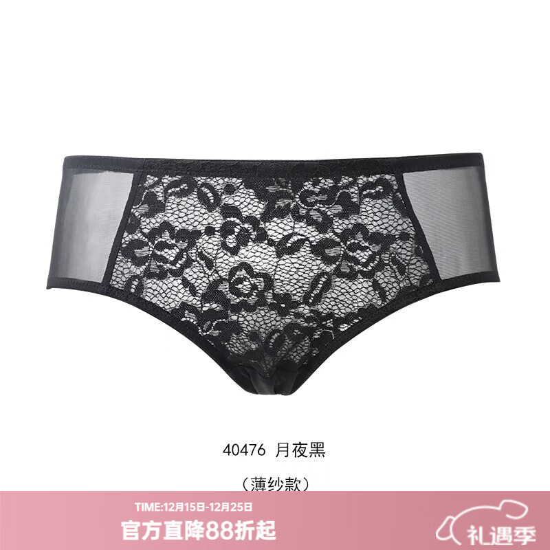 Gainreel歌瑞尔法式蕾丝内裤薄款女士内裤性感纯欲蕾丝内裤女纯棉底裆舒适 月夜黑 40462- 1条 M