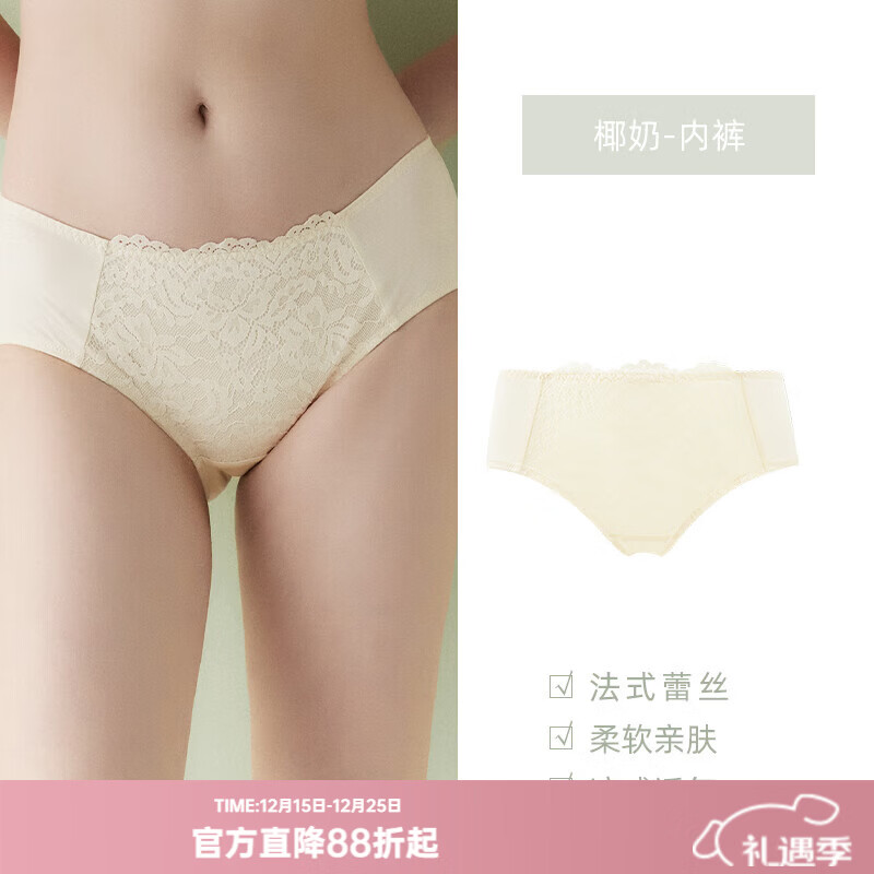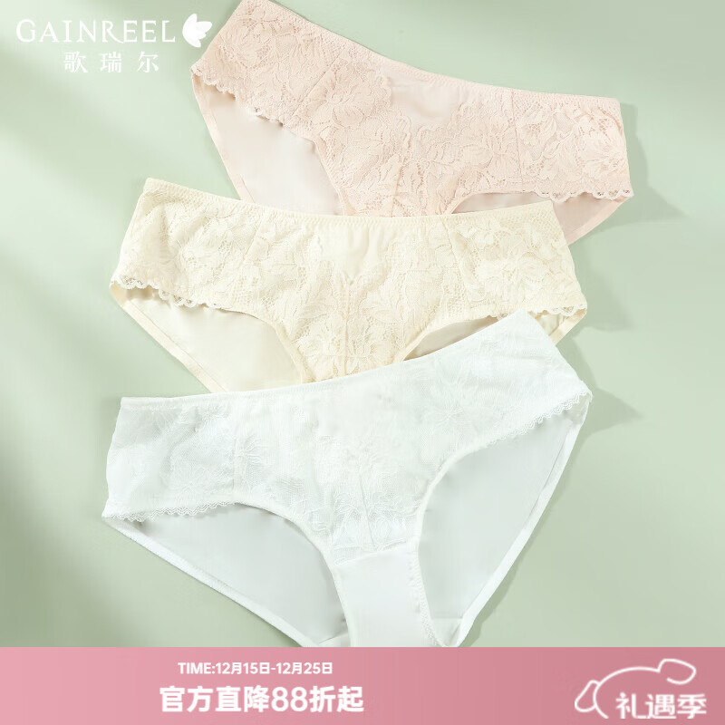 Gainreel歌瑞尔女士内裤性感蕾丝中腰棉裆底裤短裤 椰奶 40032 1条 M