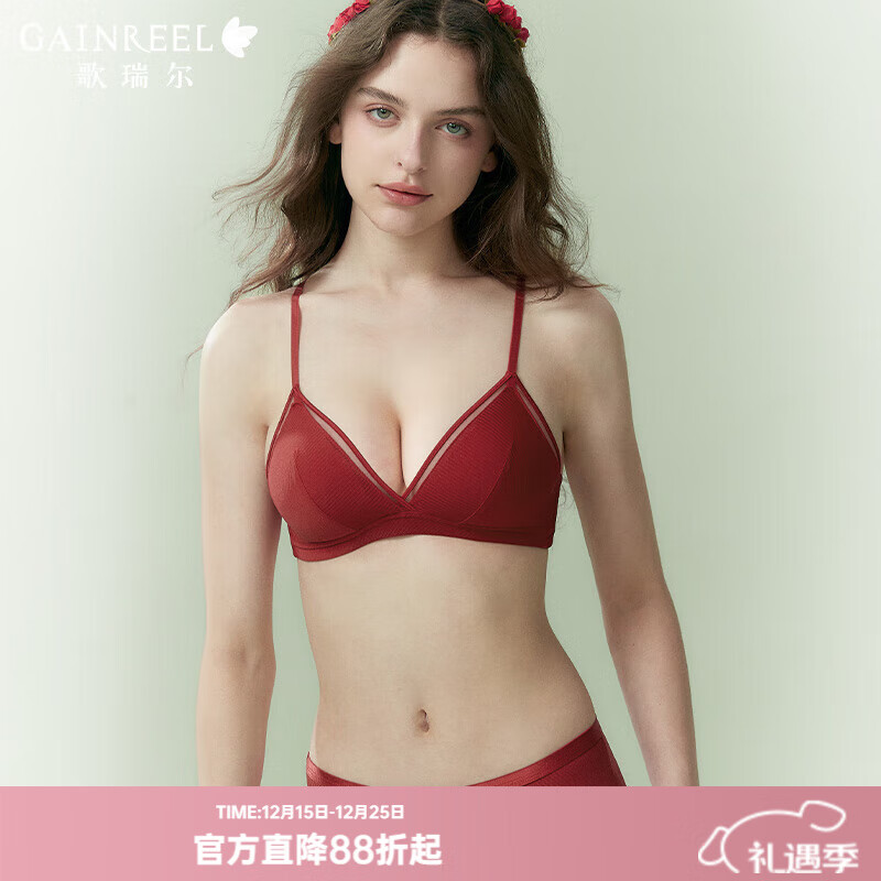 Gainreel歌瑞尔蕾丝性感内衣纯欲内衣女士内衣小胸聚拢结婚红色无钢圈文胸罩 红色 200840A文胸套装 75B (若拍下套装,内裤配M)