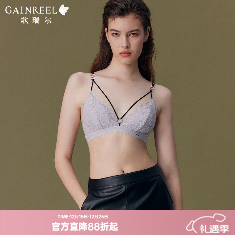 Gainreel歌瑞尔法式高级感蕾丝内衣女2024新款爆款透气深V胸罩小胸聚拢文胸套装 梦幻紫 文胸套装 85B (若拍下套装,内裤配XL)