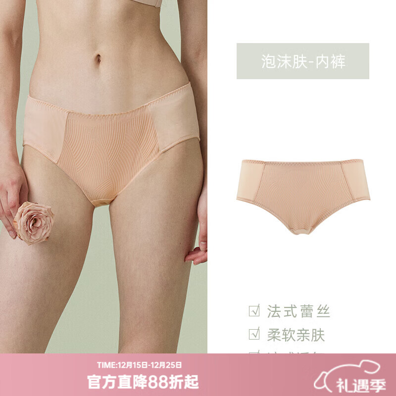 Gainreel歌瑞尔女士内裤性感蕾丝中腰棉裆底裤短裤 泡沫肤 40017 1条 M