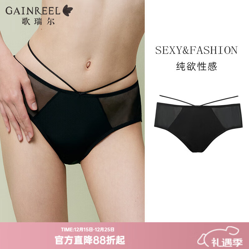 Gainreel歌瑞尔结婚本命年红色底裤女高级性感纯欲绑带中低腰内裤 宁静黑 1条 S