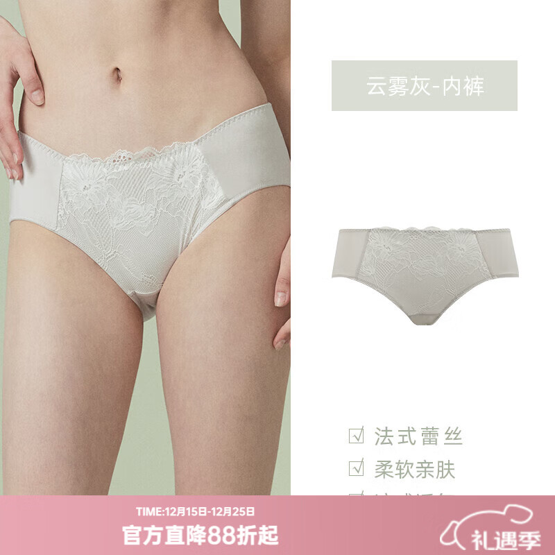 Gainreel歌瑞尔女士内裤性感蕾丝中腰棉裆底裤短裤 云雾灰 40043 1条 M