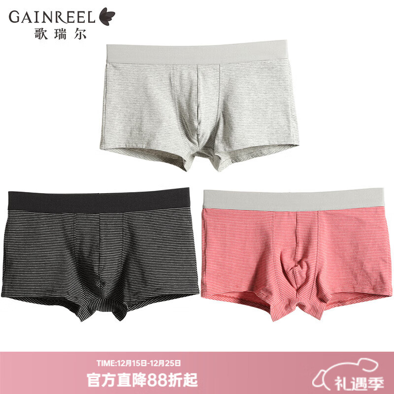 Gainreel歌瑞尔父亲节礼物透气棉质男士平角内裤舒适柔软速干四角中腰裤子3条装 多色 3条 2XL