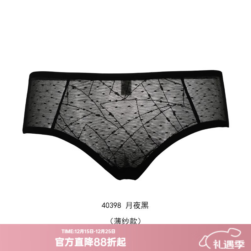 Gainreel歌瑞尔法式蕾丝内裤薄款女士内裤性感纯欲蕾丝内裤女纯棉底裆舒适 月夜黑 40398- 1条 M