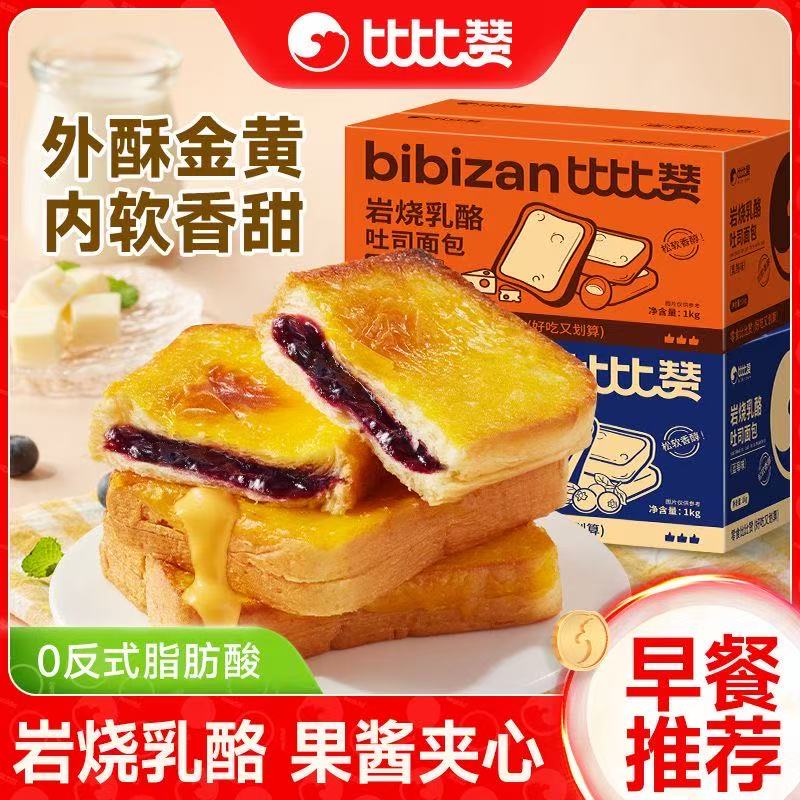 比比赞海苔肉松吐司面包整箱比比攒面包早餐蛋糕夹心面包充饥零食 蓝莓味岩烧800g*1