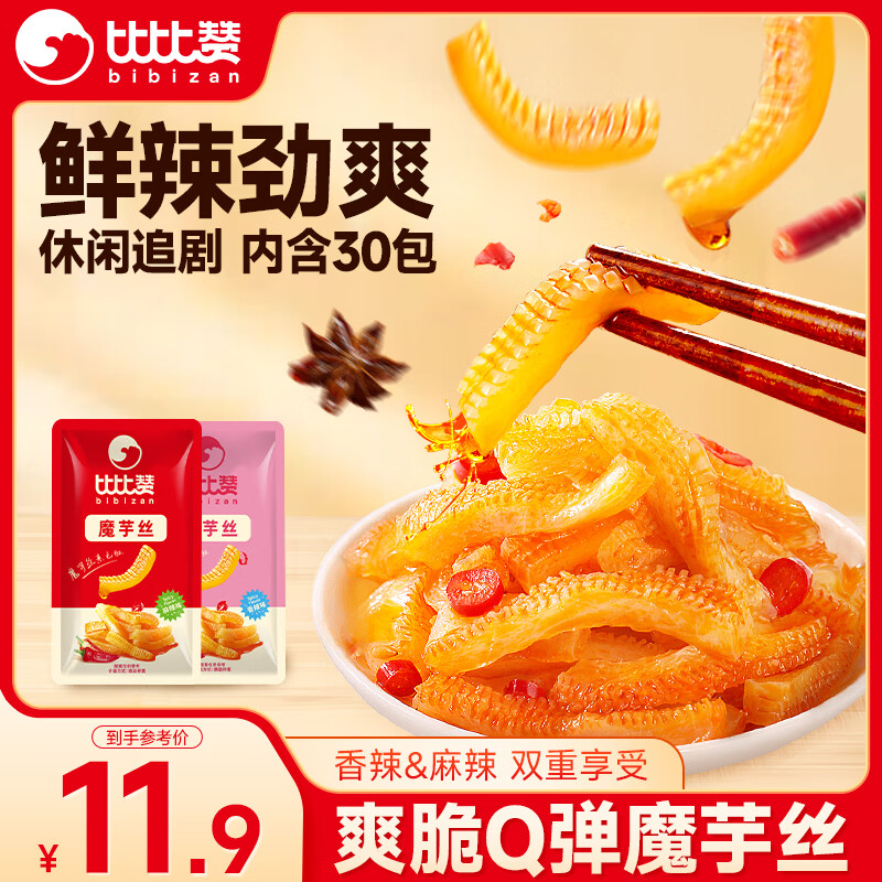 比比赞(BIBIZAN)魔芋丝素毛肚混合味270g魔芋爽辣条办公室休闲解馋小零食便携30包