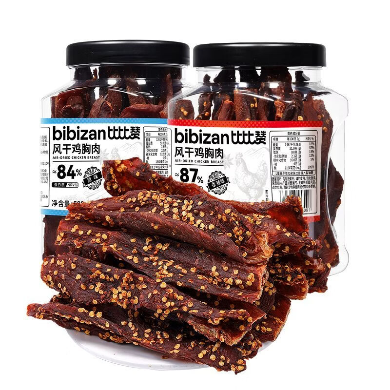 比比赞(BIBIZAN)【百补品牌771.7万件】风干鸡胸肉干条500g/罐休闲健身耐嚼即食解 香辣口味【500g*1罐】风干鸡肉条
