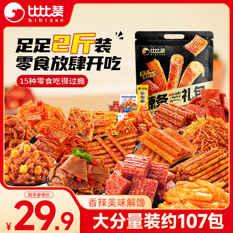 比比赞(BIBIZAN)辣条辣卤大礼包约107包素肉魔芋毛肚休闲零食大礼包团购送礼1038g
