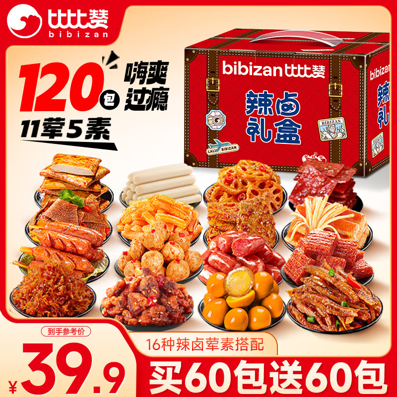 比比赞(BIBIZAN)比比赞辣卤礼盒120包 零食大礼包送礼解馋辣条豆干魔芋休闲零食