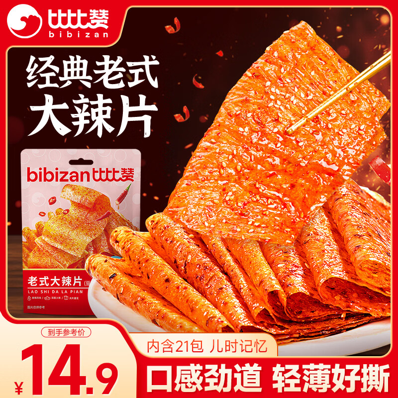 比比赞老式大辣片辣条皮手撕8090回忆怀旧小零食小吃休闲食品经典 老式大辣片68g*2