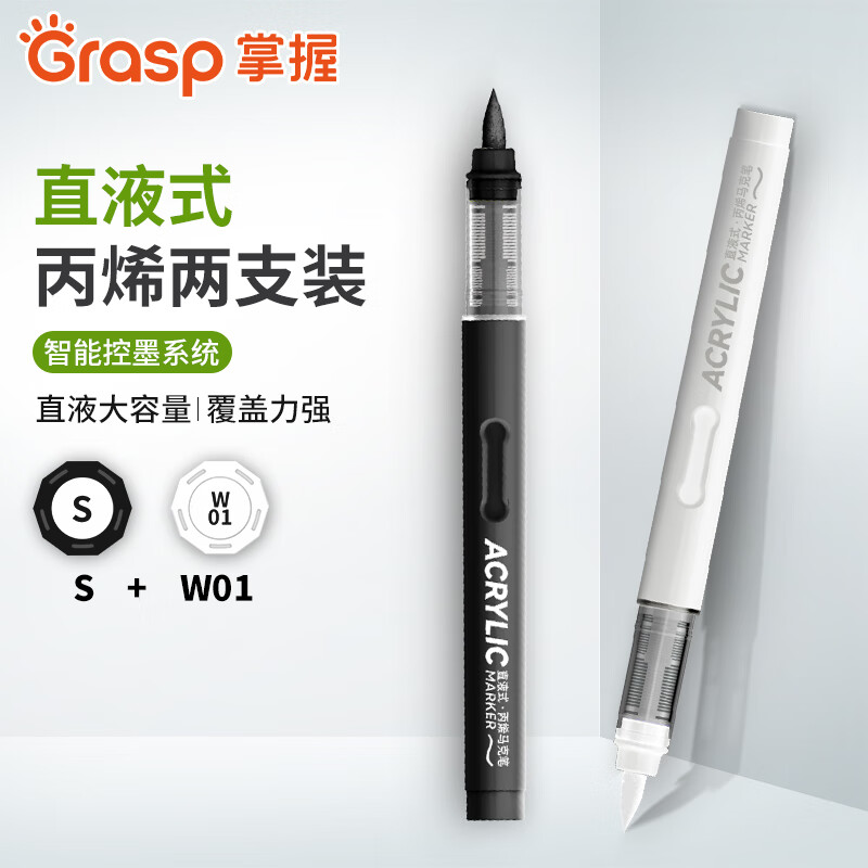 掌握直液式丙烯马克笔软头不易透色可叠色画笔学生美术生专用水彩笔男女孩生日礼物色系多达120色可选 黑色+白色【双支补充色组合】