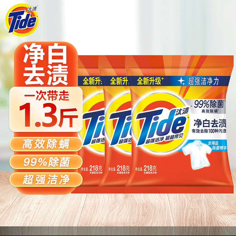 汰渍净白去渍洗衣粉去污渍去油污除菌除螨自然清香家庭装 【净白去渍】218g*3袋