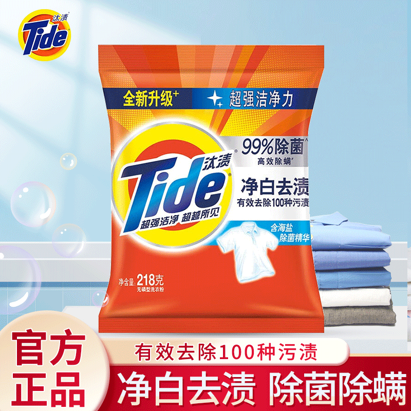 汰渍洗衣粉净白去渍袋装去污渍无磷家庭装柠檬清新自然清香 【净白去渍】218g