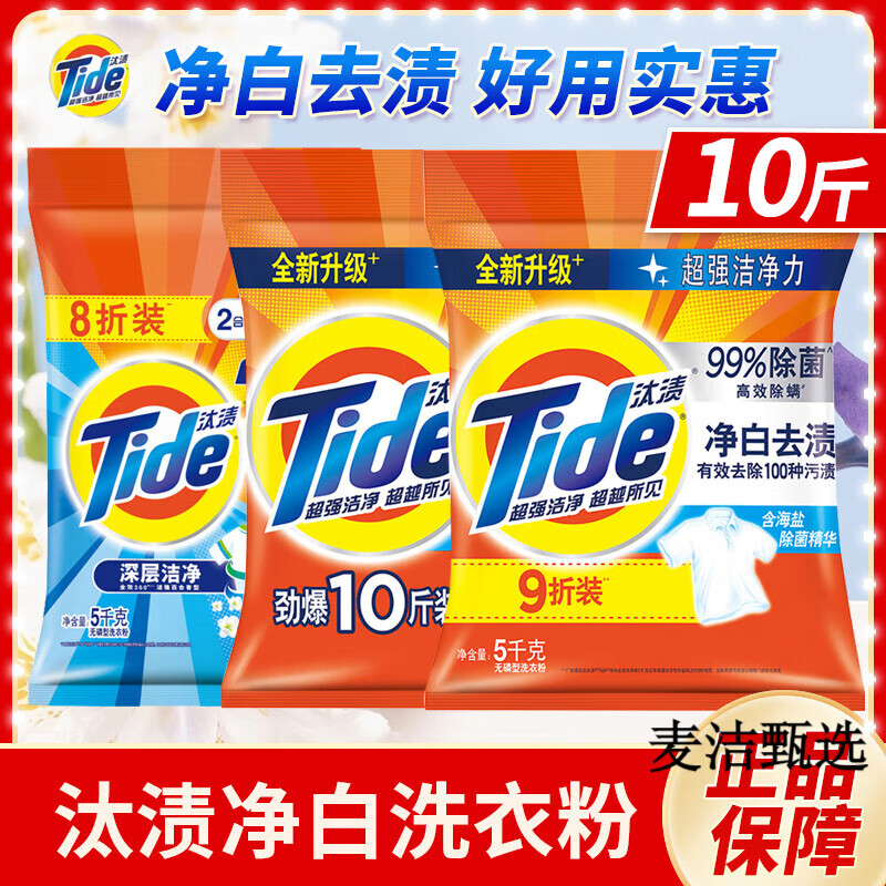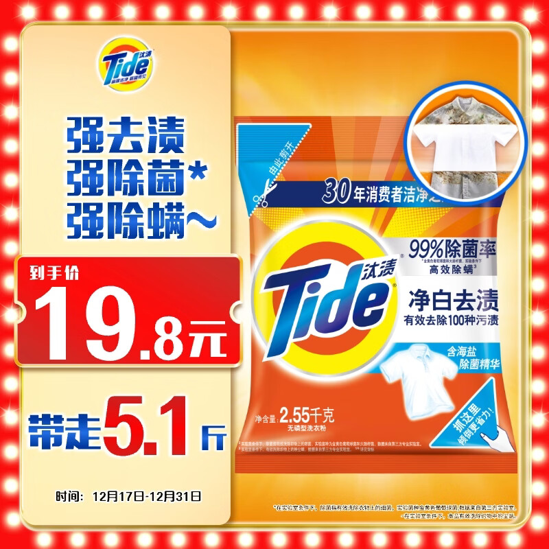 汰渍Tide洗衣粉/皂粉清香大包装无磷去污渍大袋家庭装机洗手洗适用 净白去渍2.55Kg(5.1斤)