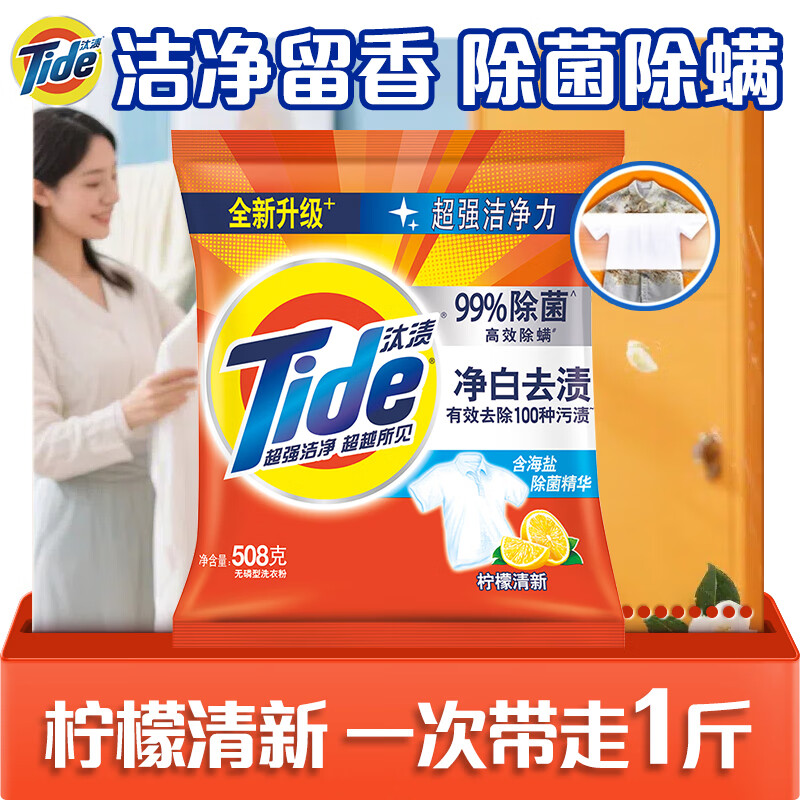 汰渍洗衣粉净白去渍袋装去污渍无磷家庭装柠檬清新自然清香 【净白去渍】508g*2袋