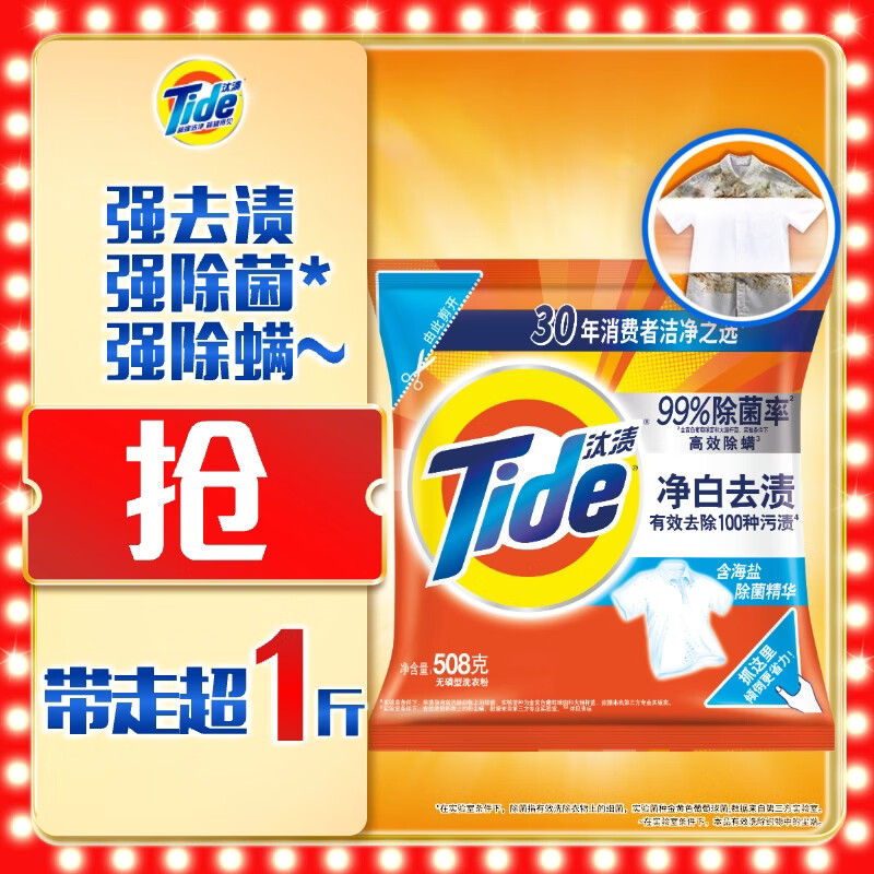 汰渍净白去渍洗衣粉508g 强效去渍 持久留香 除菌除螨 非皂粉