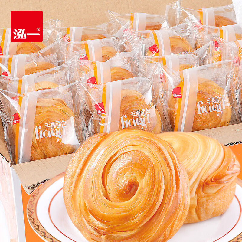 泓一手撕面包整箱无蔗糖千层软撕包营养早餐休闲零食 1斤原味