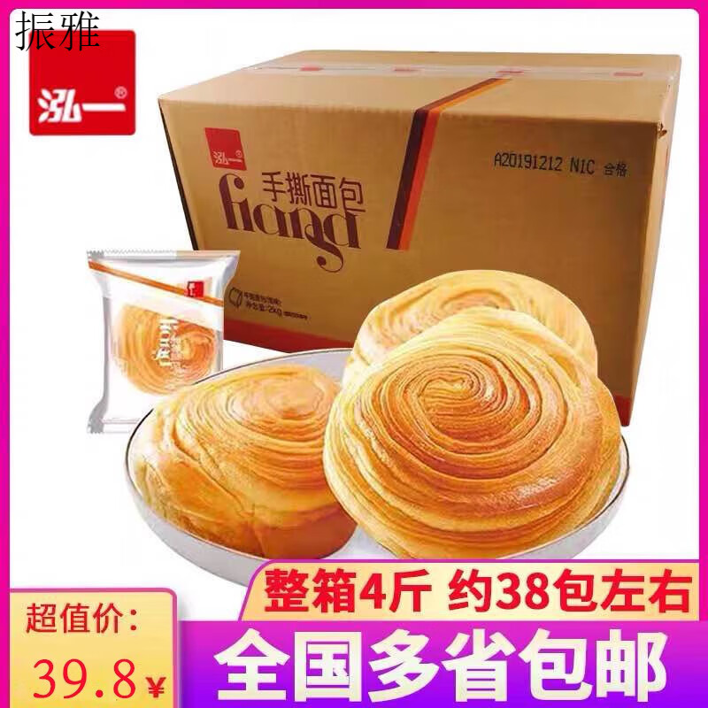 泓一手撕面包整箱4斤原味无蔗糖千层软撕包营养早餐休闲零食 2斤原味
