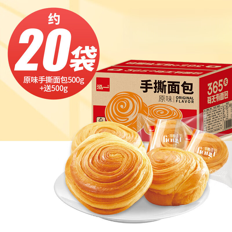 泓一手撕面包礼盒 口袋小面包营养早餐食品办公室即食早点 【量足约18袋】原味手撕面包1kg
