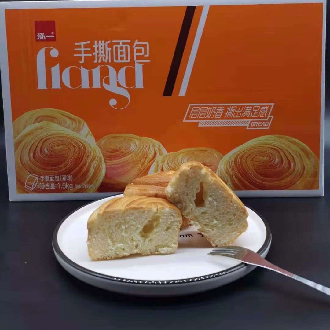 泓一手撕面包早餐整箱健康饱腹 原味1kg手撕面包