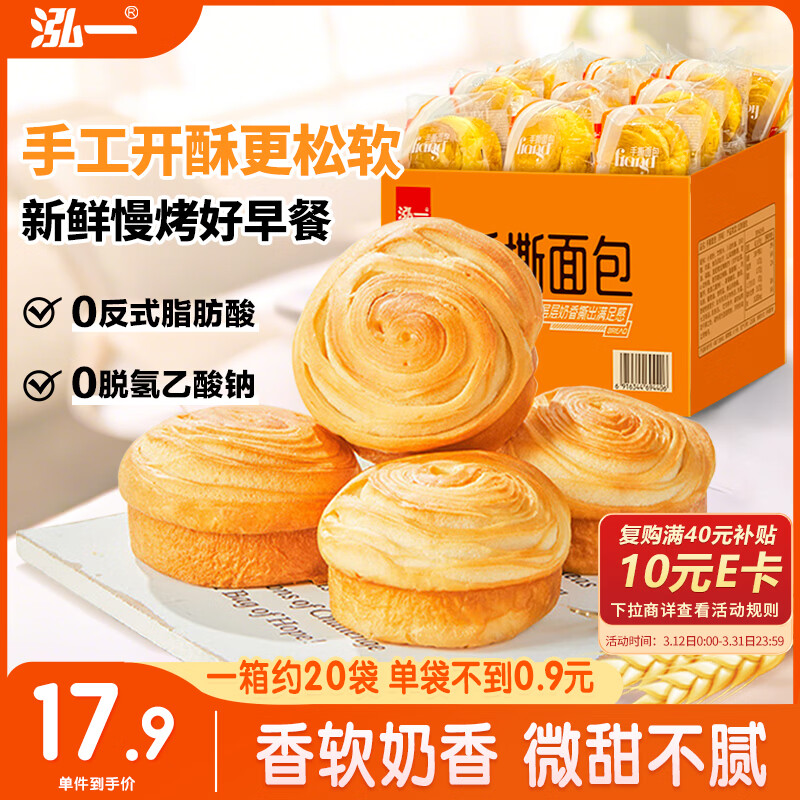 泓一手撕面包营养学生糕点蔗糖早餐代餐食品宿舍充饥休闲小吃零食整箱 手撕面包(3包试吃装)