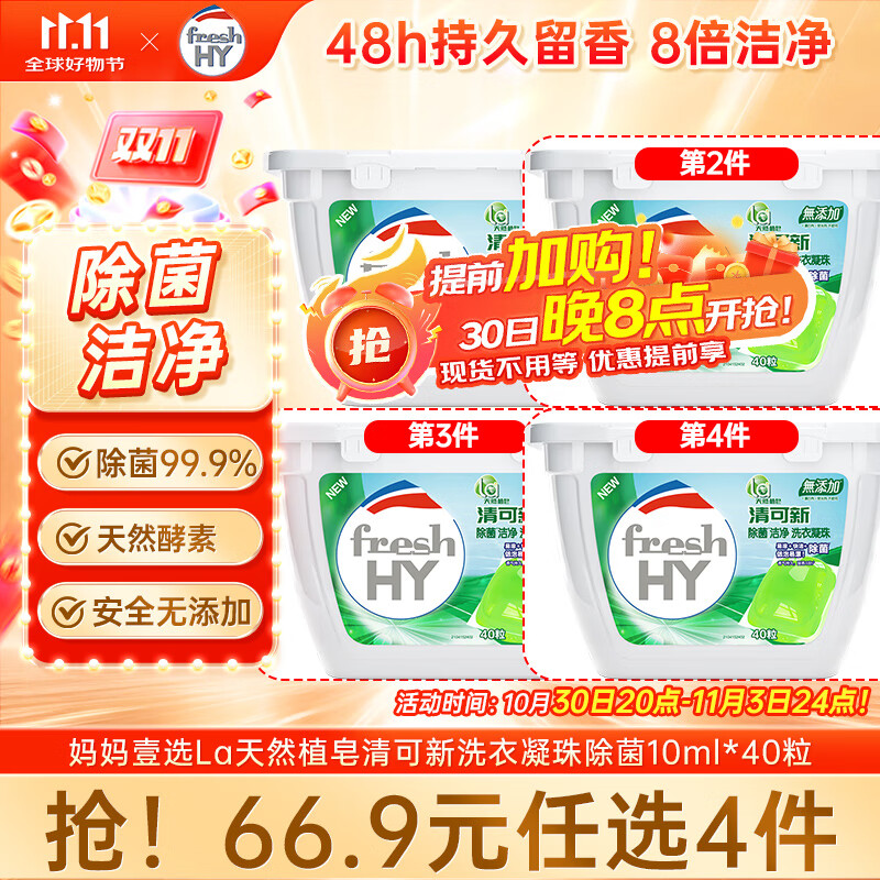 妈妈壹选La天然植皂清可新洗衣凝珠除菌10ml*40粒 留香洗衣球 浓缩洗衣液