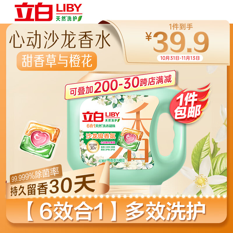 立白沙龙香氛洗衣凝珠 甜香草与橙花 40颗 三腔 留香30天 浓缩洗衣液