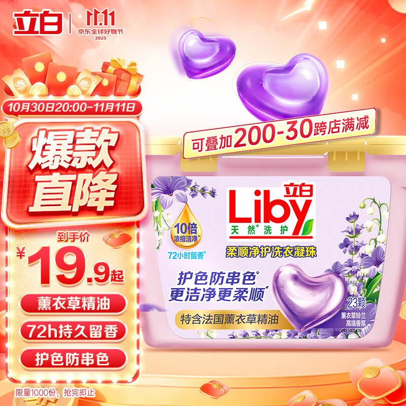 立白香氛净护精油洗衣凝珠23颗 单腔 薰衣草72h留香 浓缩洗衣液快洗