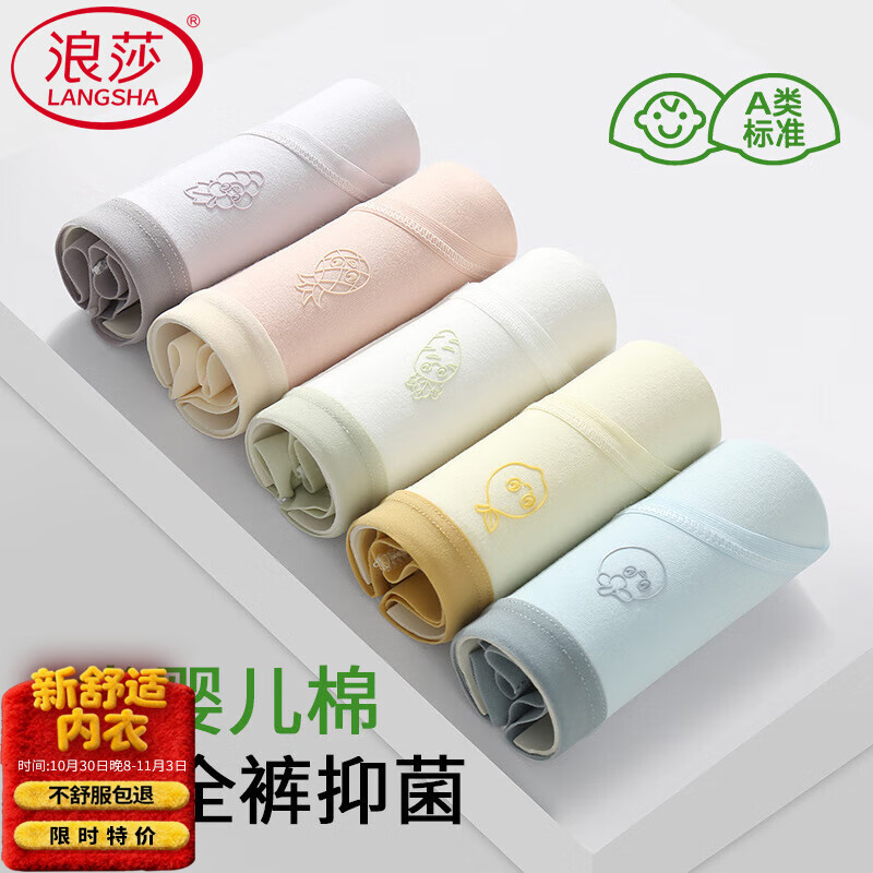 浪莎(LangSha)儿童内裤女童内裤中大童5A抑菌内裤宝宝青少年平角短裤6条装 140