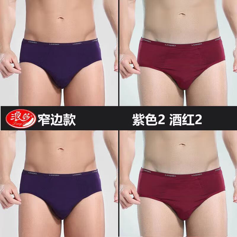 浪莎4条浪莎内裤男三角裤透气竹纤维舒适薄款男士内裤三角底裤 男裤衩 紫2酒红2 XXXL/185