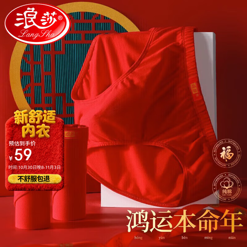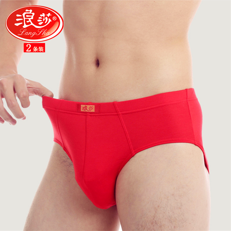 浪莎男士内裤男三角裤本命年大红纯棉结婚红内裤自然腰鸿运吉祥2条装 纯棉大红色 礼盒装 2条 XL /175码