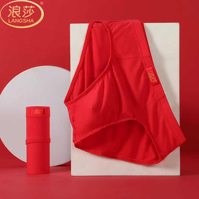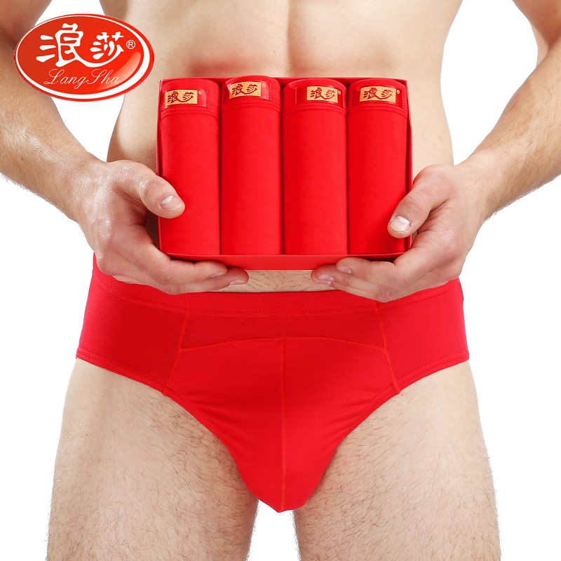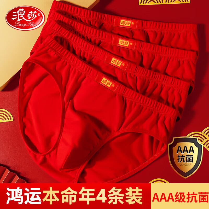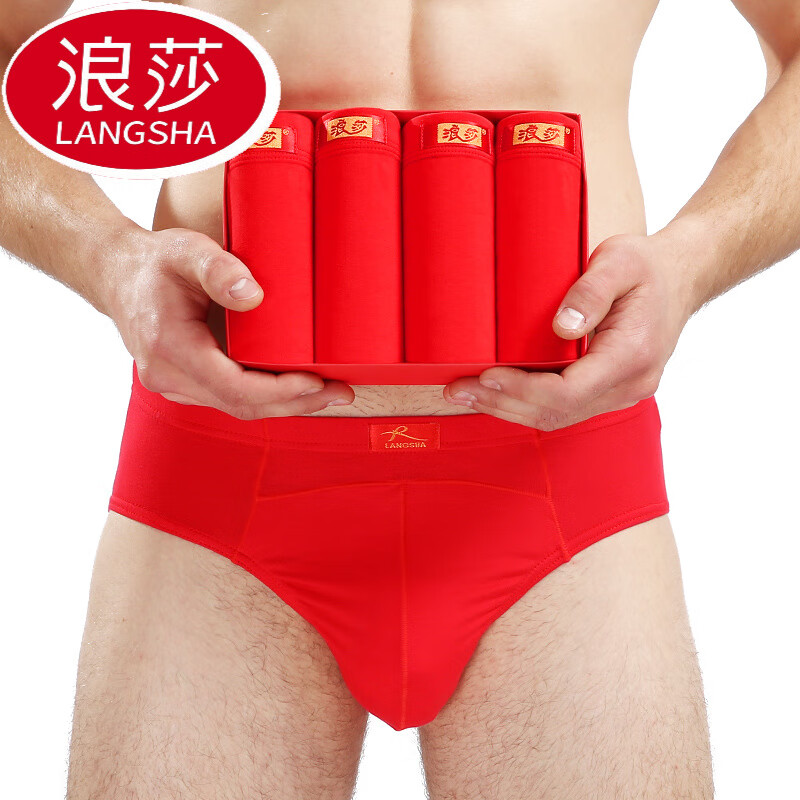浪莎男士内裤本命年红内裤男三角裤莫代尔裤头结婚大红色短裤四季 莫代尔-红三角 4条 XL (175)