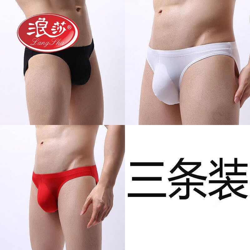 浪莎(LangSha)内裤男冰丝新款面膜超弹宽松性感三角中腰性感内裤裤头时尚底裤 君子黑+白+红 M 115斤以下