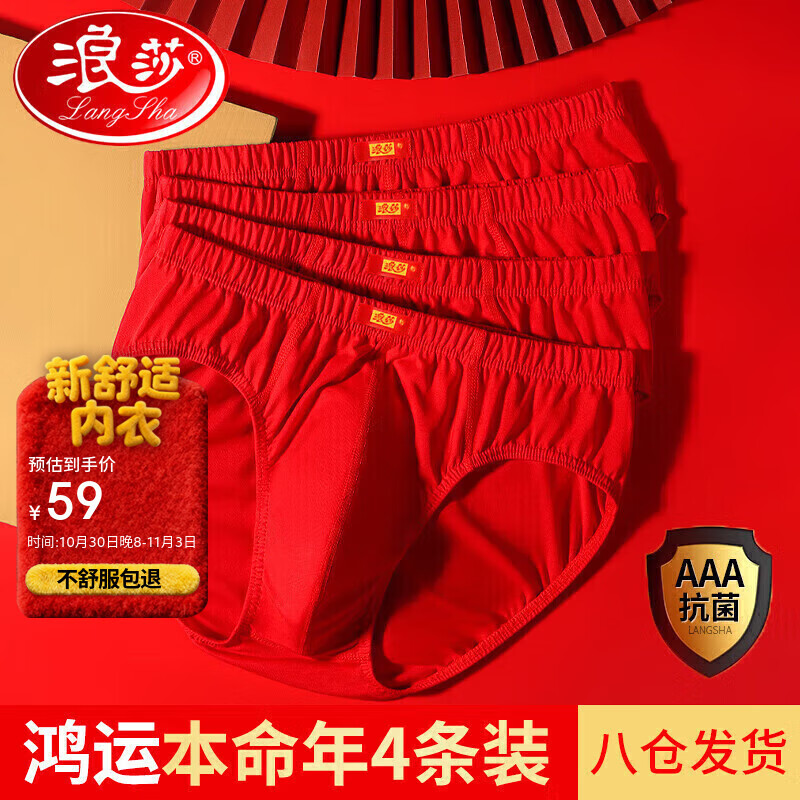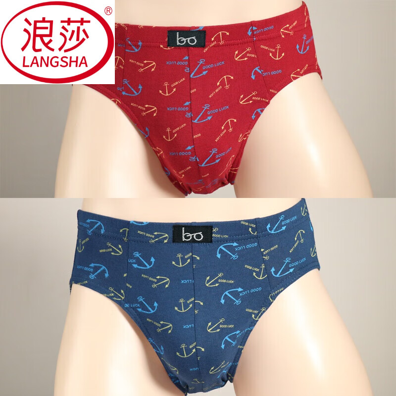 浪莎浪莎内裤男三角裤男士内裤纯棉印花中腰透气舒适全棉底裤衩4条装 纯棉大红4条装 L /170码