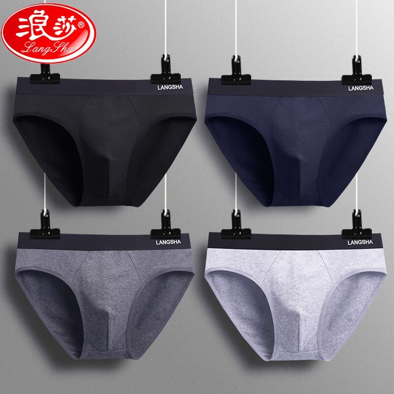 浪莎男士内裤三角裤全棉三角短裤棉质透气男生新款红性感底裤头 混色 精梳棉 4条 XL /175码