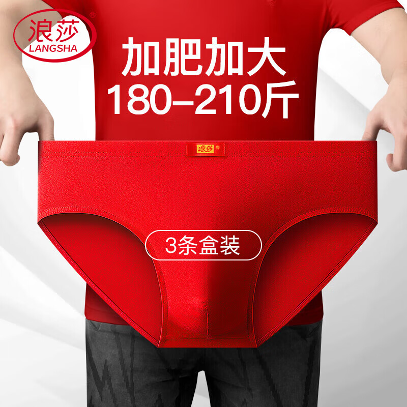 浪莎本命年骐骥红加肥加大男士内裤男肥佬三角裤结婚中老年大码内裤