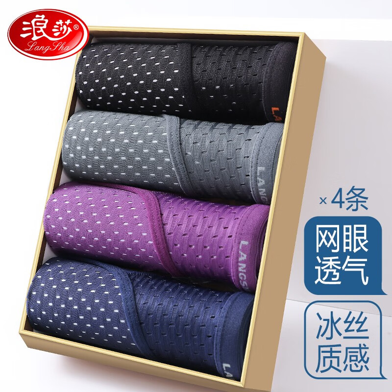 浪莎男士内裤男三角内裤冰丝夏季网眼超薄大码夏季宽松透气裤头送爱人 四条礼盒装 175/100