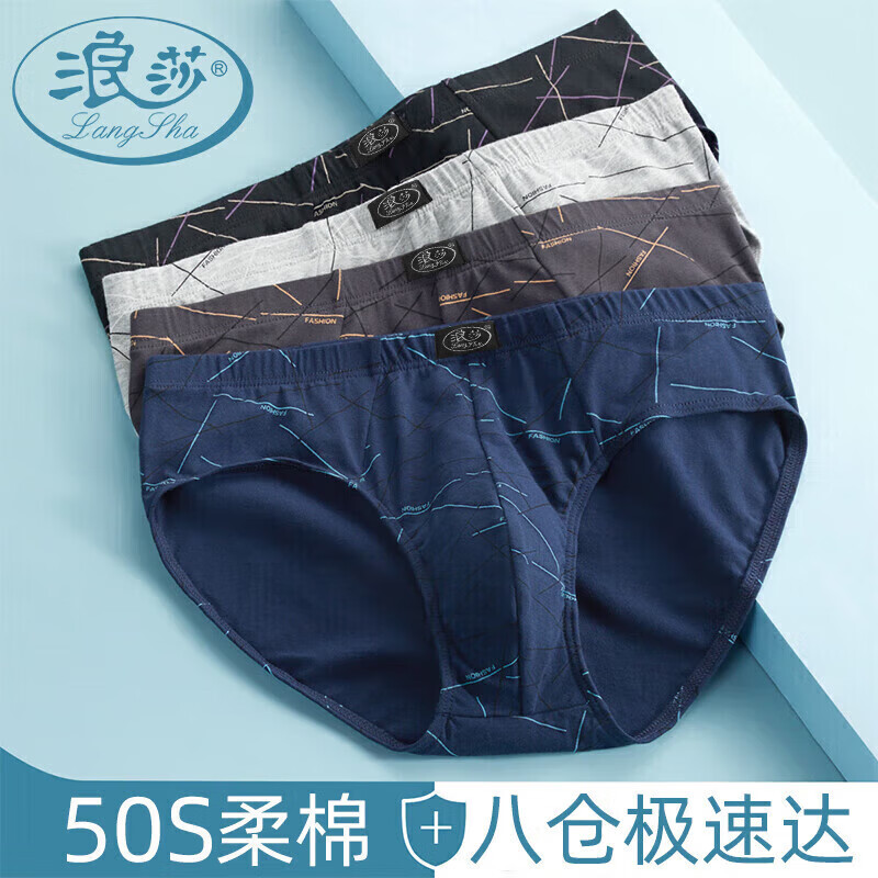 浪莎男士内裤男三角裤抗菌舒适透气棉质大码青年中腰短裤头男式裤衩