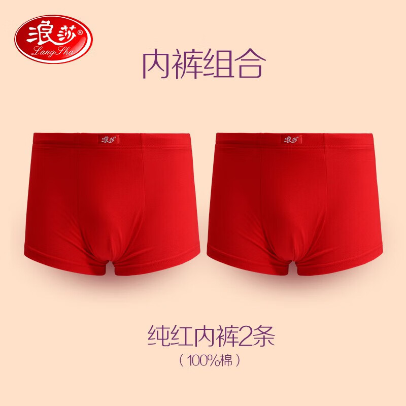 浪莎男士内裤红色本命年属蛇大红色结婚平角蛇年四角红内裤男裤衩 大红纯色 2条 3XL (185/110)男