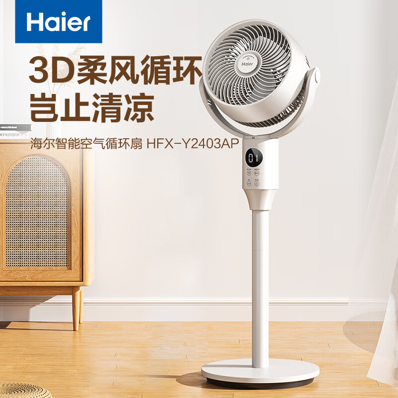 海尔(Haier)空气循环扇电风扇家用落地扇台地两用语音风扇安静轻音卧室电扇节能小风扇低噪循环轻羽扇 【6档循环风】语音款HFX-Y2349AP