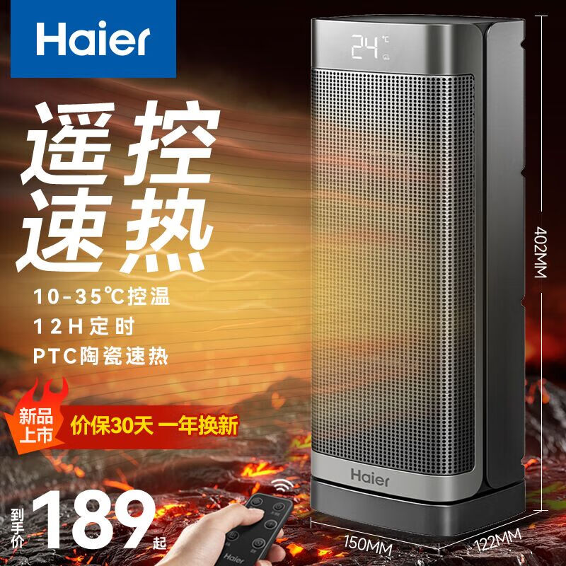 海尔(Haier)暖风机/取暖器家用/电暖器/热风机/电热风扇/电暖气/台地两用速热节能桌面台式立式办公室烤火炉 【整屋升温】遥控恒温HNF-S2047A
