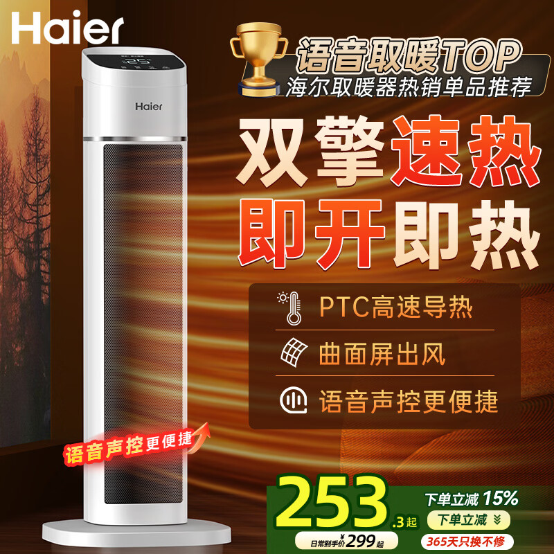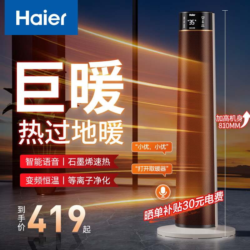 海尔(Haier)石墨烯取暖器家用立式暖风机冬季取暖神器卧室办公室电暖器即开即热电暖气暖风扇热风机婴儿浴室 等离子净化/石墨烯/语音款HNF-S2260AP