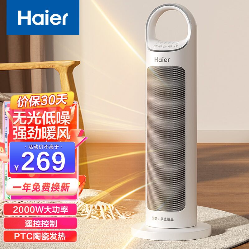 海尔(Haier)取暖器暖风机家用电暖器遥控电暖气速热节能直流双风轮热风机轻音立式小太阳烤火炉卧室办公暖风扇 【升级遥控款+35°恒温】HNF-S2050A