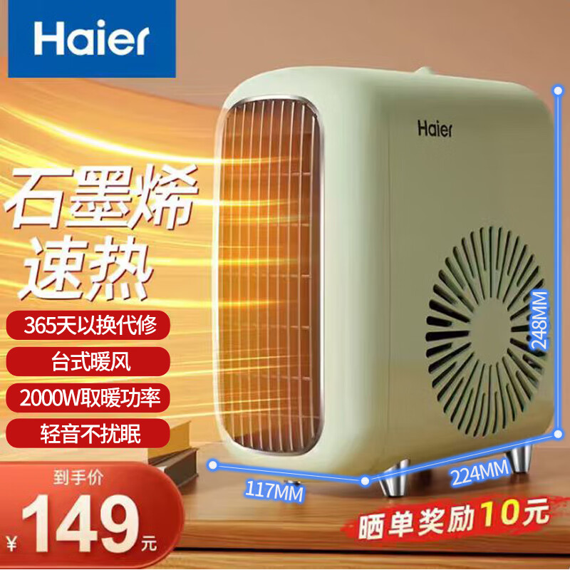 海尔(Haier)桌面取暖器暖风机家用台式电暖器小型电暖气暖风扇浴室热风机卧室 【石墨烯款】HNF-2026AP