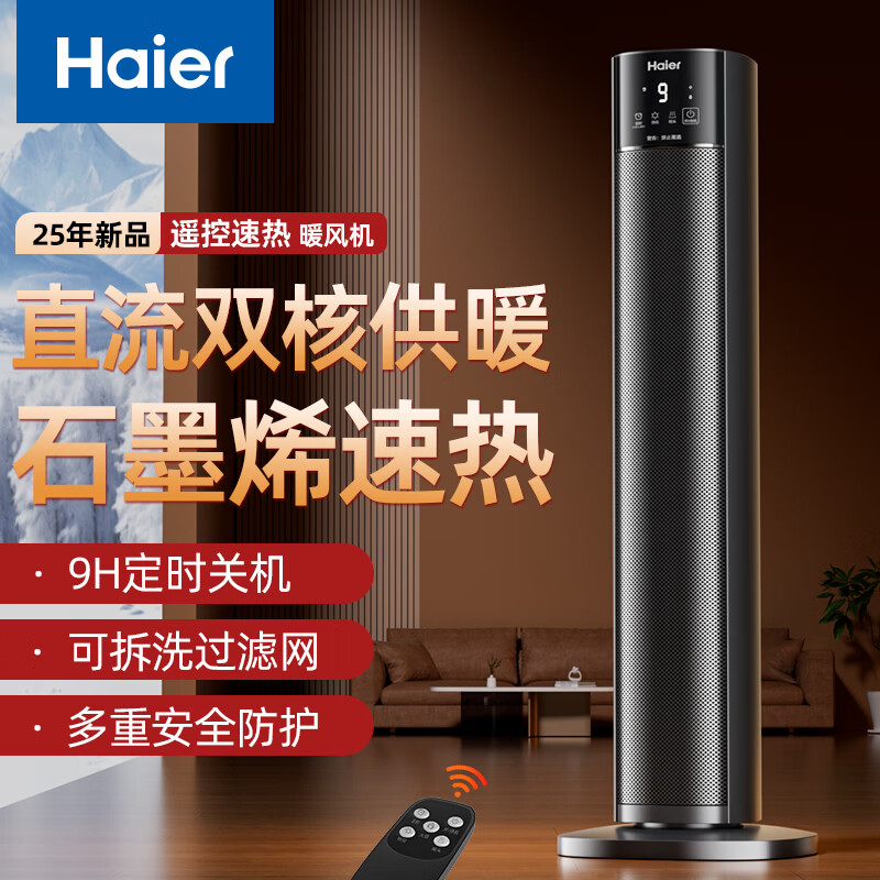 海尔(Haier)暖风机石墨烯家用取暖器立式电暖气轻音节能省电热风机智能语音电暖器卧室烤火炉暖风扇2025新款 【石墨烯速热/9H定时安睡】遥控HNF-S2245