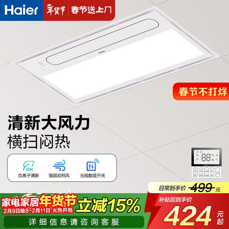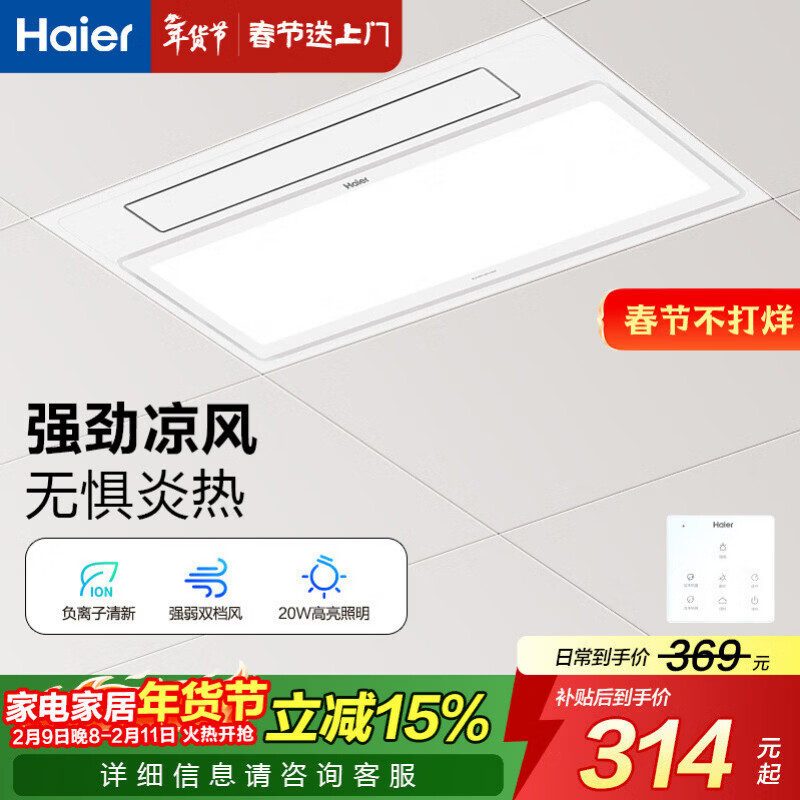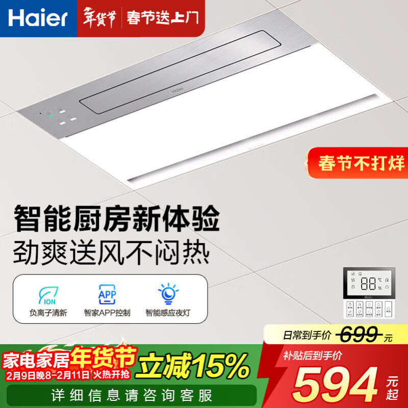 海尔凉霸照明吹风排气一体 厨房智能凉霸扣板灯带风扇【旗舰款】
